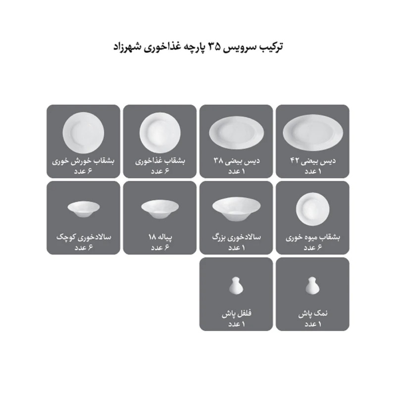 سرويس غذاخوری 35 پارچه چینی زرین ایران آرایه شهرزاد طرح سمرقند